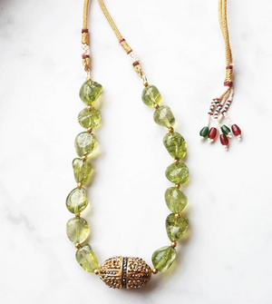 Showcase your compassionate side with this beautifully handcrafted peridot necklace that displays an unmatched antique charm. Featuring a lac pendant in the middle and peridot gems held together with a 24kt gold foil, this exotic necklace is a rare piece of jewelry to behold and flaunt. Act now to own it today!
