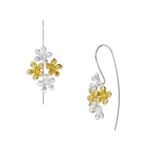These beautiful dual-tone 92.5 sterling silver earrings are designed to dangle and go well with both contemporary and traditional attire. Mimicking 5-leaf flower patterns, each of these earrings has 4 flowers with two diagonally opposite ones sporting 18kt gold plating to bring some variety and visual appeal to the design. With a brushed finish, these dangle earrings can add a sparkle to your life every day.
