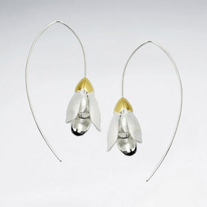 Dual Tone 92.5 Sterling Silver Blossom Bud Earrings with 18kt Gold Plating