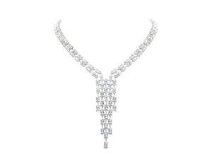 Turn heads with this cascading crystal statement necklace, designed to add instant glamour to any look. With its dazzling arrangement of rhinestones in a waterfall silhouette, this piece is perfect for brides, party wear, or special evenings out.