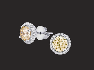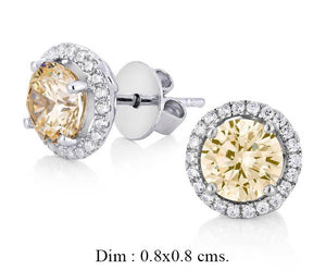 These elegant canary yellow and white CZ halo stud earrings offer a touch of subtle sparkle. Featuring a brilliant round center stone surrounded by a shimmering halo, they are perfect for everyday wear or adding a delicate touch to any occasion.