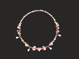 Stones: White pearl and premium quality cannary, pink, white cubic zirconia